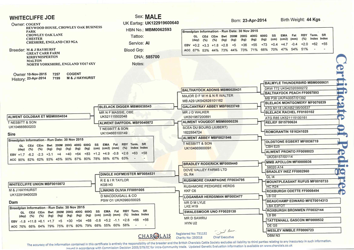 Sản phẩm >> Tinh, phôi đông lạnh » Tên đực giống: WHITECLIFFE JOE