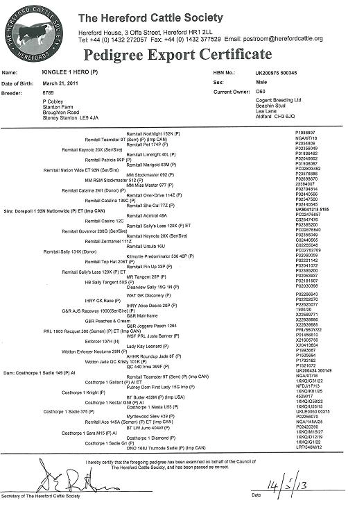 Sản phẩm >> Tinh, phôi đông lạnh » Tên đực giống: KINGLEE 1 HERO